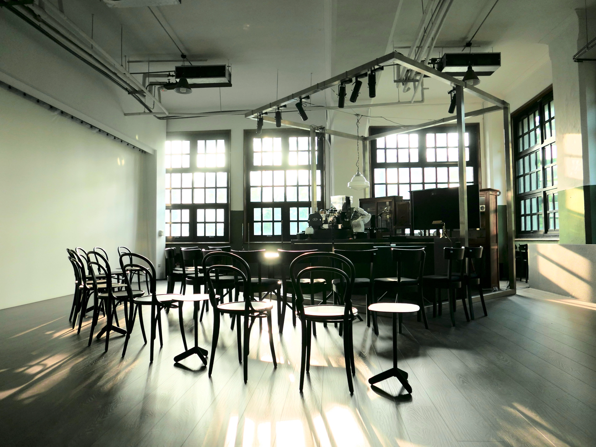 〈小螞蟻與機器人 咖啡小酒館〉定目劇在台北松菸工作室醞釀多時,舞臺裝置與XRANGE十一事務所張淑征建築師合作,也邀請MUME主廚林泉擔任料理顧問,以及蜷尾家冰淇淋創辦人李豫,一同打造演出的空間與提供的餐點,讓觀眾有更全方位的沉浸體驗。演出容納觀眾數僅15人,讓觀眾與表演者都更直接的感覺到對方的每一個細節,藉由僅僅一隻手臂的距離,帶領觀眾體驗被放大的演出情緒與能量。〈小螞蟻與機器人 咖啡小酒館〉呈現出未來22世紀坐落於台北的咖啡廳景觀,透過舞者們與KR3小庫卡機器人的共同服務,打造獨樹一幟的定目劇演出
