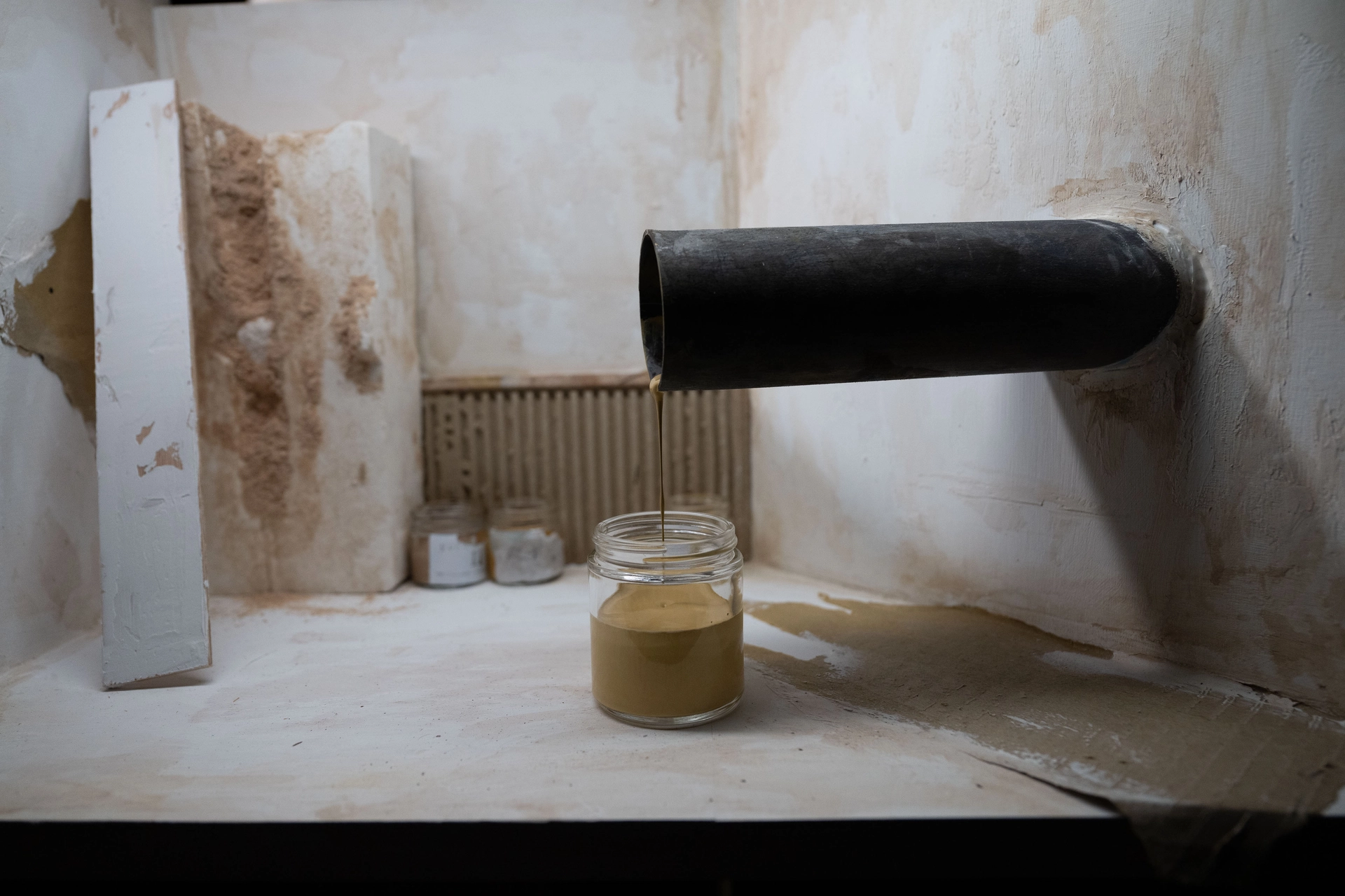 〈彩虹彼端〉探索了欲望與滿足、夢想與現狀之間的不穩定平衡。觀看者在中心看著畫廊、劇場等不同空間在周遭變化,具體或抽象的物件不斷來去,沿襲河床劇團一貫意象劇場的強烈風格。作品中如同夢境一般的敘事邏輯,帶領觀看者探索虛擬和真實的邊界,「彩虹彼端」也象徵著人永不滿足的渴望。透過全新的表達媒介,河床劇團以〈彩虹彼端〉重新向觀眾提問:「若我們總是在一處與另一處之間,我們何時才能完全活在此時此地?」