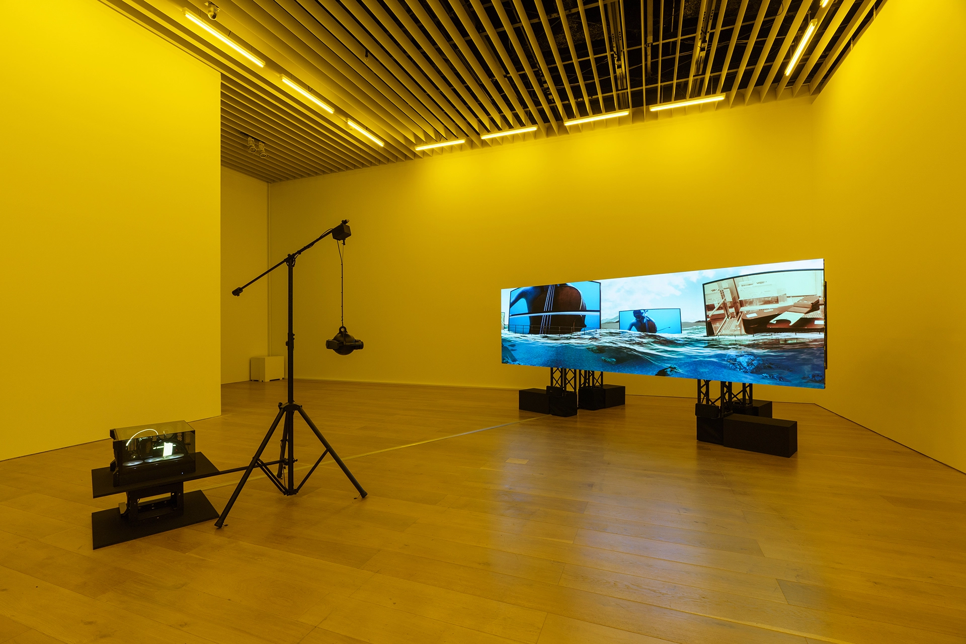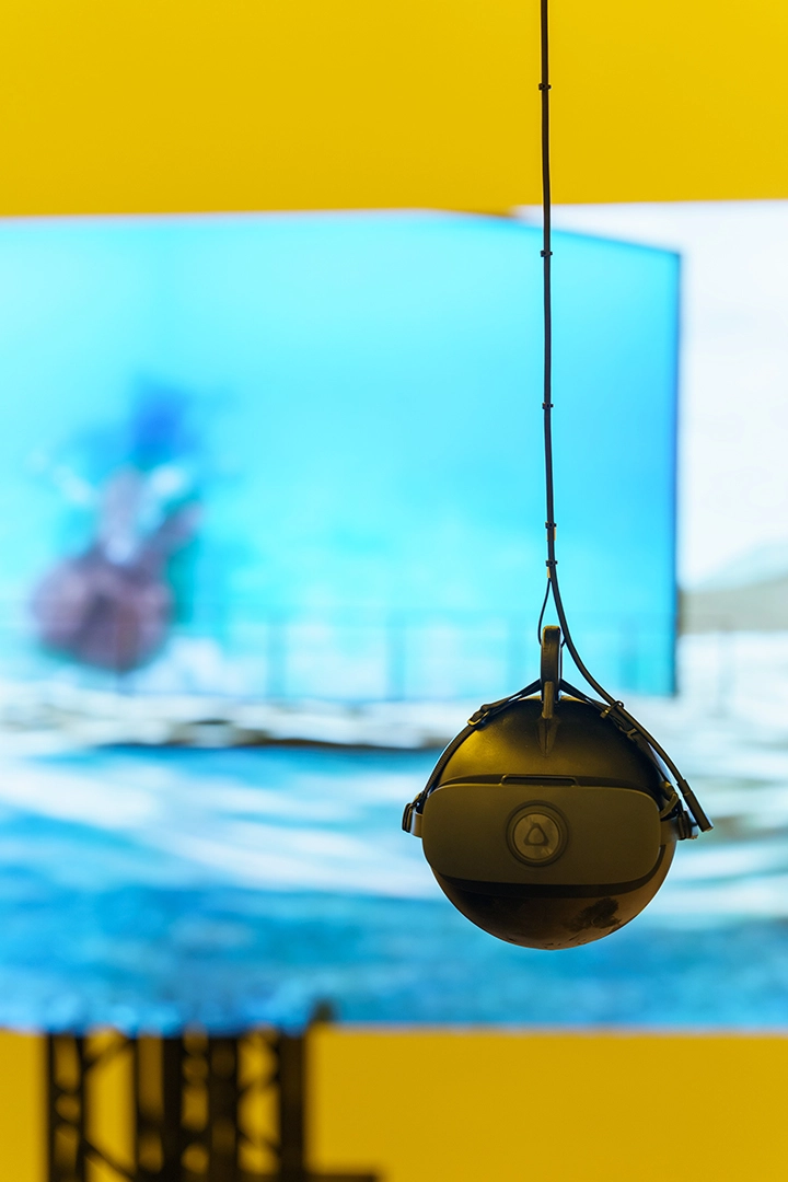 展覽裝置是由VR頭顯裝置、懸掛在空間中的浮球與電子螢幕所構成,浮球在空間中緩緩地晃動,這個運動軌跡連動了VR頭顯裝置當中的影像,這是由浮球動態所產生的運鏡,並投放在電子螢幕上,呈現了浮球的第一人稱視角,以及這段物質到數位的旅程。