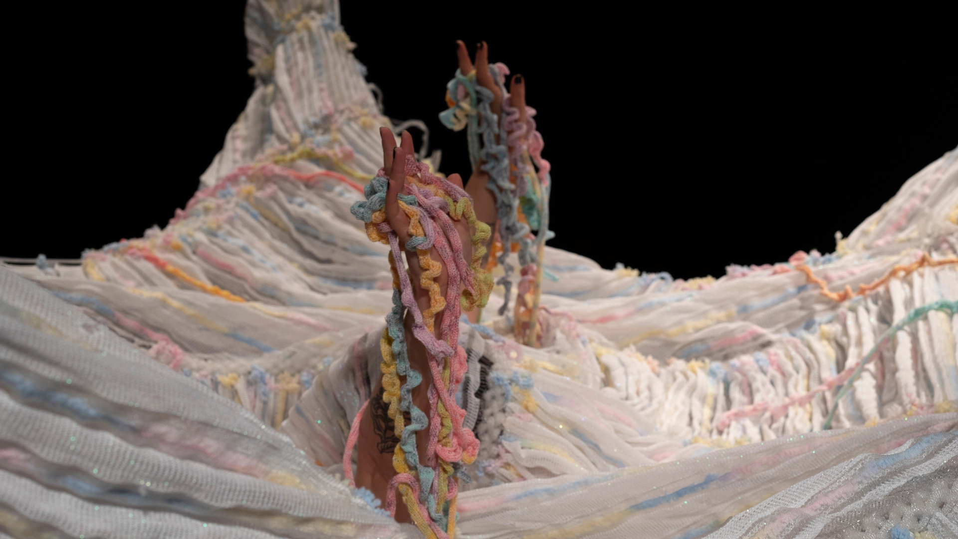 2020年全球因冠狀病毒肆虐起了變化,世界秩序因病毒而改變既往的運作規則。藝術家林沛瑩透過病毒不受物種生殖隔閡限制的特質,嘗試以「病毒圈」(Virosphere)的新視野切入,呼應人類與生命個體相互依存的本質,藉由作品開展出人類與病毒共存的辯論。